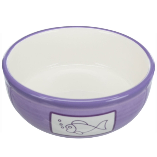 Keramiknapf für Katzen mit Fischmotiv. Diverse Farben. Eine Farbwahl ist leider nicht möglich, da die Farbe je nach Lagerbestand gewählt wird.